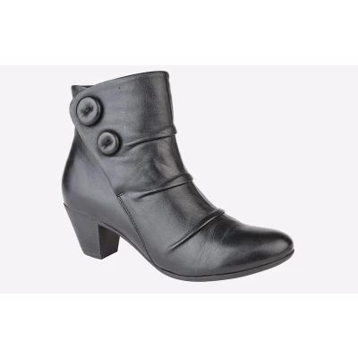 Sleek and stylish, Cipriata deliver these women's Emma boots, boasting a chic black leather upper with ruched button detailing, and a sumptuous memory foam footbed for all day comfort. - Soft Leather - Button detailing - Zip fastening - Memory foam footbed - TPR Sole. Apx.50mm Heel