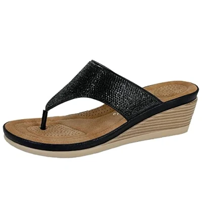 Cipriata L238A 7 SANDRA Womens Toe Post Diamonte Wedge Sandal Black Sparkle size UK