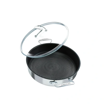 The Circulon C Series Sauteuse boasts flat non-stick rivets that simplify cleanup like never before. Unlike regular stainless steel pans, this design minimizes food sticking and makes cleaning hassle-free. The sealed rims protect against corrosion, making this pan dishwasher safe while also being oven safe up to 260°C (500°F) and suitable for all stovetops, including induction.