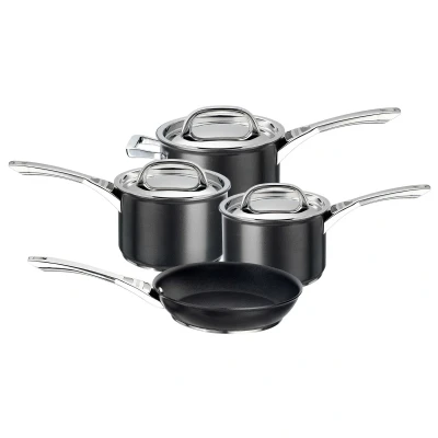 CirculonIf you're trying to refresh your kitchen to achieve a modern kitchen feel, you need to shop the Infinite Non-Stick Induction Saucepan & Skillet Set with 4 Pieces. As well as looking the part, the Infinite range Non-Stick Saucepan & French Skillet Set provides outstanding performance and delivers hob to oven capability thanks to it's robust materials and innovative technology. Each piece has been expertly made using our patented Hi-Low Non-Stick system, while stainless steel and aluminium bases offer durability and even heat distribution. This set of 4 pans includes: 16cm Diameter - Small Non-Stick Saucepan & Lid 18cm Diameter - Medium Non-Stick Saucepan & Lid 20cm Diameter - Large Non-Stick Saucepan & Lid 24cm Diameter - Medium Non-Stick French Skillet Circulon Infinite Non-Stick Small, Medium & Large Saucepan & French Skillet set includes: Patented Hi-Low food release system. Proven to provide outstanding non-stick performance. Fully encapsulated, stainless steel and aluminium base Suitable for all cooker types including induction. Heavy gauge, hard anodized body – twice as hard as stainless steel Cast stainless steel riveted handles for maximum durability. Dishwasher safe.