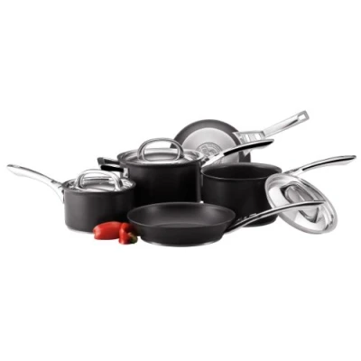 Amazon5 PIECE PAN SET INCLUDES: Circulon Infinite 16 cm, 18 cm and 20 cm saucepans with stainless steel lids and 20 cm and 24 cm frying pans NON STICK PAN SET: This non stick oven safe pots and pans set features Circulons patented hi-low release system technology ensuring food wont stick, guaranteed. Not only does this make the pans easy cleaning, but it ensures that they wont chip, scratch or stain INDUCTION HOB SUITABLE: The infinite cookware collection is suitable for all cooker types, including induction hobs. The saucepans and frying pans feature a fully encapsulated stainless steel and aluminium base, meaning that no matter what cooker you're using, you can cook high quality meals due to their quick and even heat distribution DURABILITY: Circulon's typically stylish Infinite cookware range has a heavy gauge hard anodised body: these pans are twice as hard as stainless steel for outstanding durability. And design meets practicality with these pans as they're dishwasher safe, oven safe (up to 240°C/465°F/Gas Mark 9) and despite being non stick, they are metal utensil safe GUARANTEED QUALITY: Built to last, this induction hob pan set is made exclusively from fine materials and craftsmanship. So much so that they also feature long lasting solid cast stainless steel riveted handles. Circulon stand behind the durability of these extremely resilient pans so much so that they offer a lifetime guarantee