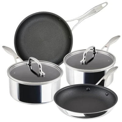 Amazon MarketplacePAN SET INCLUDES: 16cm & 20cm Saucepans with Lids, 22cm & 25cm Frying Pans, all with Scratch Defense technology eliminate scratching, sticking and flaking for our most advanced non stick yet EXTREME NON STICK, THAT WONT SCRATCH EVER: Combining the luxury of Stainless Steel with Circulon’s ScratchDefense Extreme Non-Stick technology. A triple layer metal-utensil-safe non stick that lasts 130x longer than the competition, laboratory tests have simulated 200+ years of daily wear and tear ULTRA-THICK CLAD INDUCTION SUITABLE COOKWARE: Multi-layer stainless steel pan set featuring an ultra thick aluminium core that conducts heat evenly and efficiently throughout the pan, with a beautifully crafted stainless steel clad exterior from the base to the rim. Suitable for every hob every hob - Induction, Gas, Electric & Ceramic LIFETIME GUARANTEE: Featuring fully coated flared rims and helper handle for easy pouring and added durability, this latest Circulon pan set is designed to stand the test of time. Metal utensil safe and withstands more than 350,000 scrapes without scratching, peeling, or flaking. Scratch free, worry free, forever CRAFTED WITH DURABLE AEROSPACE-GRADE MATERIALS: Essential for hob to oven recipes, this ScratchDefense non stick pan set is oven-safe up to 260°C. You can effortlessly transition from stovetop to oven, unlocking new possibilities for roasting, baking, and broiling with one set of cookware. EASY CLEANING: Experience the very best in cooking convenience with ScratchDefense Multi-Layer stainless steel cookware and say goodbye to arduous scrubbing and soaking thanks to this easy hand wash in seconds, extreme non stick - saving valuable space in the dishwasher after a family meal!