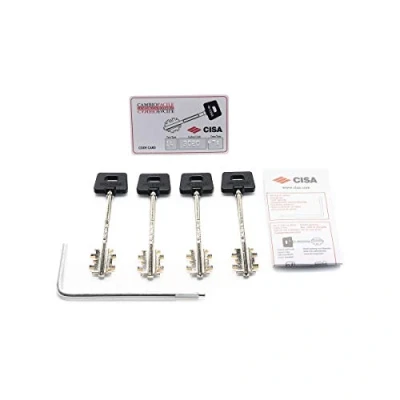 Easy change lock key set (reusable) 5 long keys, key length: 64 mm Nickel plated brass key; black nylon key head Shift Tool Property Card, Weight: 0.4188782978 Pounds, Manufacturer: CISA