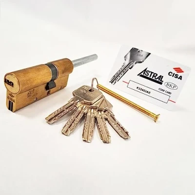 Double cylinder installed on doors with Euro profile lock, prepared for knob assembly, with shortened shank Size 45/30 mm 5 keys. Brass body Brass cylinder Bump Resistance, Picking Resistance, Drill Resistance, Tear Resistance Cylinder wear resistance: score 6 out of 6 (EN1303:2015), Manufacturer: CISA