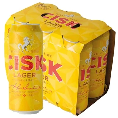 Cisk Lager 6 x 500ml Cans (4.2% ABV) Maltese Lager, Crisp & Balanced Refreshing Mediterranean Style Beer from Malta