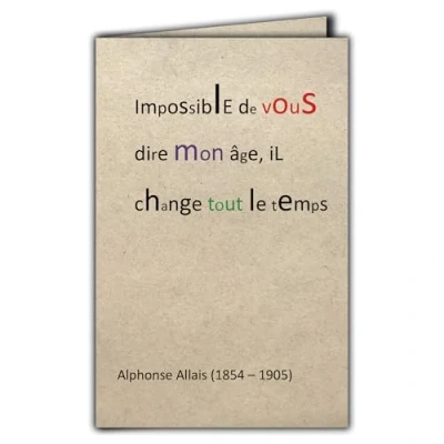 CIT 1001 Quote Card on natural fibre paper with envelope "Impossible de vous tell me mon age il changtt le tps" Alphonse Allais Made in France from sustainably managed forests