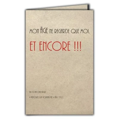 CIT 1005 Quote Card on Natural Fibre paper with Envelope "MON AGE NE REGARDE QUE MOI ET ENCORE" Made in France from sustainably managed forests