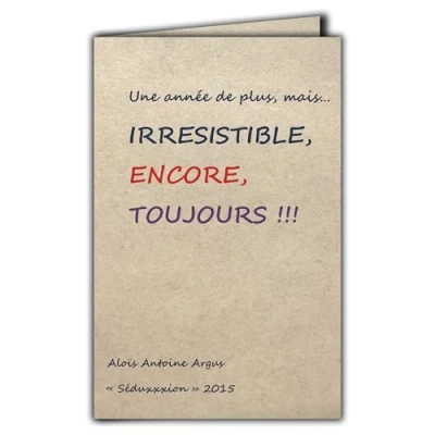 CIT 1006 Quote Card on natural fibre paper with envelope "Une année de plus mais IRRESISTIBLE ENCORE ALWAYS " Aloïs Antoine Argus Made in France from sustainably managed forests