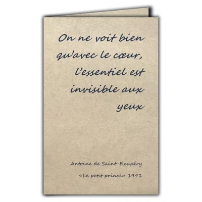 CIT 1016 Quote Card on Natural Fibre Paper with Envelope We do not see well that the heart essential is invisible to eyes Antoine de Saint Exupéry Le petit prince Je t'aime ou PACS