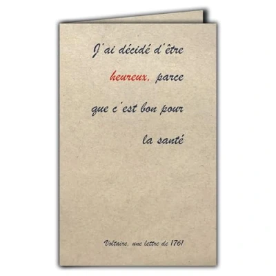 CIT 1021 Quote Card on Natural Fibre Paper with Envelope I decided to be happy, because it's good for health Voltaire Made in France