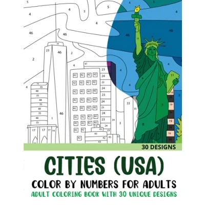 Cities USA Color by Numbers for Adults: Adult Coloring Book with 30 Unique Designs of City (Color Number Books Adults)