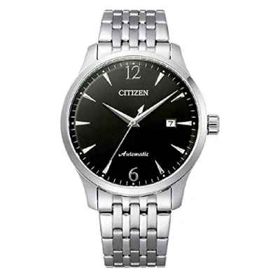 Men's analogue watch from the brand. Citizen Round black stainless steel dial with automatic movement With mineral glass Stainless steel strap in silver colour Water resistant to 10 bar