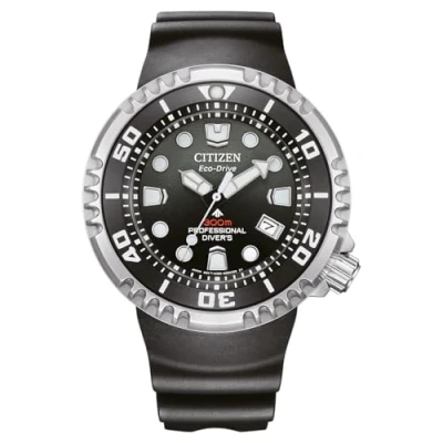 CITIZEN PROMASTER Professional Diver 300 m For over 35 years, CITIZEN’s PROMASTER series has delivered professional-grade performance. This Analogue watch features a calendar function: Date and is equipped with Solar Powered , Luminous Hands and Luminous Numbers Premium Black Rubber strap, measuring 21 cm in length and 24 mm in width, with a Buckle. Case diameter: 46 mm,case thickness: 16 mm, case colour: Silver and dial colour: Black Water resistant: United Watch Trading N.V., uk_watches, UNILY-Weight: No g The watch is delivered in an original gift box and has a warranty of 2 years