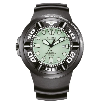 This Citizen Promaster Marine Analogue Watch for Men is the perfect timepiece to wear or to gift. It's Black 48 mm Round case combined with the comfortable Black Plastic watch band will ensure you enjoy this stunning timepiece without any compromise. Operated by a high quality Eco-Drive movement and water resistant to 30 bars, your watch will keep ticking. This Eco-Drive watches recharges itself in any kind of light, to run forever. This Eco-Drive watch does not require any battery replacement, charging or winding to maintain constant operation This Analogue watch has a calendar function: Date , Solar Powered , Luminous Hands , Luminous Hands and Screw Down Crown. Comes with a extension strap High quality 21 cm length and 26 mm width Black Plastic strap with a Buckle Case diameter: 48 mm,case thickness: 18 mm, case colour: Black and dial colour: Green