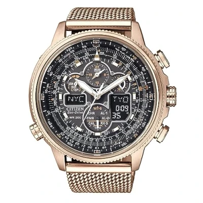 GENTS ECO-DRIVE NAVIHAWK A.T WR200 Go where the wind takes you with the Citizen Navihawk A-T. With atomic clock synchronisation for superior accuracy, this perpetual calendar chronograph receives radio signals both automatically and on-demand in North America, the United Kingdom, Europe, Japan and China. The rose gold-tone stainless steel case and mesh bracelet with black dial features world time in 43 cities, 2 alarms, 1/100-second chronograph, 99-minute countdown timer, UTC display, power reserve indicator, hand correction and shock sensing function. FEATURES:A 48mm rose gold tone stainless steel case & mesh bracelet, Atomic clock syncronisation, Perpetual calendar, chronograph. Radio signals automatically and on demand from North America, UK, Europe, Japan and China. Black dial, World time in 43 cities, 99 minute countdown timer, UTC display, Power reserve indicator, hand correction & Shock sensing function LIGHT POWERED ECO-DRIVE: Converts any light, whether natural or artificial, into energy. Energy is stored in a permanently rechargeable power cell. The watch recharges continuously in any light to run forever, with no battery changes required. UK APPROVED SUPPLIER: Comes With a 5-year Citizen UK warranty.