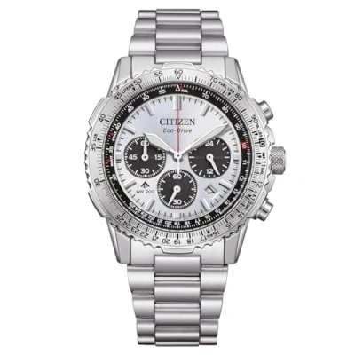 The Promaster series from Citizen represents professional sports watches since 1989. In addition to diving, sailing and outdoor watches of all kinds, this naturally also includes pilot's watches. This Chronograph watch has a calendar function: Date as well as a Solar Powered , Stop Watch , 24-hour Display and Luminous Hands. High quality 21 cm length and 21 mm width Silver Stainless steel strap with a Fold over with push button clasp Case diameter: 40 mm,case thickness: 13 mm, case colour: Stainless steel and dial colour: Silver Water resistant: 20 bars -Weight: 165 g The watch is delivered in an original gift box and has a warranty of 2 years