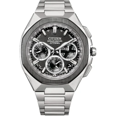 First ATTESA model with ceramic bezel and solar-powered Eco-Drive Satellite Wave GPS The ATTESA model series always features the latest technologies. This Chronograph watch features a calendar function: Date and is equipped with Solar Powered , Stop Watch , 24-hour Display , Luminous Hands and Alarm Premium Silver Titanium strap, measuring 21 cm in length and 23 mm in width, with a Fold over with push button clasp. Case diameter: 46 mm,case thickness: 14 mm, case colour: Silver and dial colour: Black Water resistant: United Watch Trading N.V., uk_watches, UNILY-Weight: No g The watch is delivered in an original gift box and has a warranty of 2 years