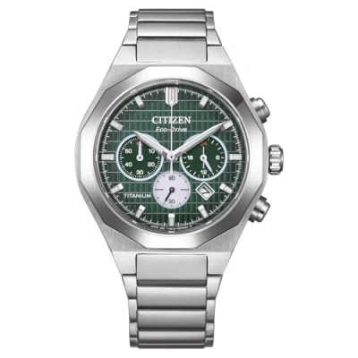 CITIZEN Zenshin Senkei Eco Drive Solar Super Titanium Chronograph with Bracelet and Sapphire Glass, green, strappy