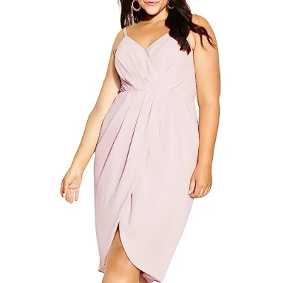 ey Features Include: - V-neckline - Thin adjustable shoulder straps - Faux wrap design - Invisible back zip closure - Elasticated back waist for a flex fit - Tulip skirt - Fully lined - Midi length