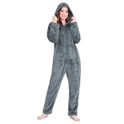 CityComfort Onesies for Women Soft Comfy Fleece Pyjamas Nightwear Fluffy Onesie Lounge Wear Sizes S XL (Grey, M)