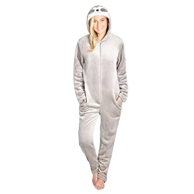 CityComfort Onesies for Women Soft Comfy Fleece Pyjamas Nightwear Fluffy Onesie Lounge Wear Sizes S XL (L, Grey Sloth)