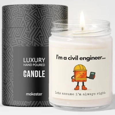 Civil Engineer Gift Luxury Soy Wax Candle Vanilla, Jasmine, Sugared Almond Makester