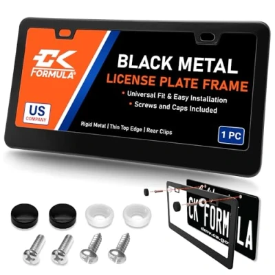 CK Formula Black License Plate Frame, Aluminum Metal, 2 Pre Drilled Screw Holes with Install Kit, Universal Fit, Car Wash Safe, Weatherproof, 1 Piece
