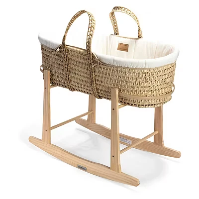 Clair de Lune Organic Palm Moses Basket and Natural Rocking Stand Award Winning Baby Bassinet Basket, Dressing, Bamboo Mattress, Sheet Newborn Essentials (Natural Cream)