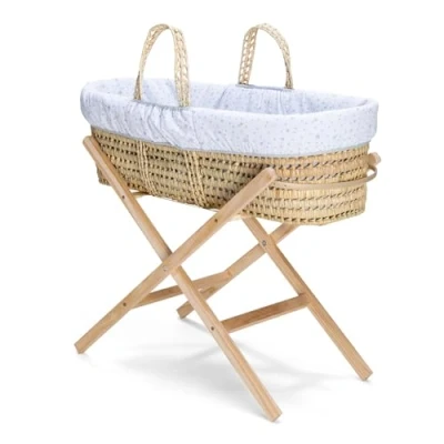 Baby Essential Bundle:This Moses Basket includes all of our best-selling baby essentials bundled up at less than half price! Our handwoven palm basket, padded liner and firm, hypoallergenic mattress is the perfect combo for the sweetest of dreams for little one night after night. Paired with our self-assembly folding stand, this simplistic bundle is our affordable yet stylish solution for your nursery needs. HANDWOVEN NATURAL PALM BASKET: A traditional and sturdy Moses Basket handwoven from organic palm leaf. The woven design enhances airflow within the basket ensuring your baby’s comfort. COMPLETE SLEEP SOLUTION: Our Moses Basket offers everything your baby needs for peaceful sleep. Complete with full bedding set, reversible coverlet, hypo-allergenic water-resistant mattress & removable, adjustable hood. QUALITY MATERIALS: The Moses Basket is hand-dressed in ultra-soft Stars & Stripes cotton fabrics, providing a breathable & stylish sleep space. The bedding and mattress cover are easily removed and machine washable. SAFE SLEEPING : It’s recommended that you room-share with a newborn, and our Moses Basket provides a safe and secure option. It conforms to the BS EN 1466:2014 safety standard and is quality checked in-house. Suitable from birth to 9kg.Do not carry the Moses Basket while your baby is inside.
