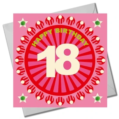 HIGH-QUALITY AND SUSTAINABLE: These 150mm x 150mm cards are printed on top quality heavy sustainable card stock. Both the greetings card & envelope are recyclable. CAPTION: Happy Birthday 18 MADE IN THE UK: Designed, printed and finished in the UK, and embellished with colourful pompoms. BLANK INSIDE FOR YOUR HAND-WRITTEN MESSAGE: These cards have plenty of blank space inside, making it easy to add your own hand-written messages. ENVELOPE INCLUDED AND COMPOSTABLE POLYBAG: They come complete with a quality grey envelope, and individually wrapped in a biodegradable compostable poly bag. Can be sent with Royal Mail standard letter stamps