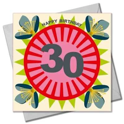 HIGH-QUALITY AND SUSTAINABLE: These 150mm x 150mm cards are printed on top quality heavy sustainable card stock. Both the greetings card & envelope are recyclable. CAPTION: Happy Birthday 30 MADE IN THE UK: Designed, printed and finished in the UK, and embellished with colourful pompoms. BLANK INSIDE FOR YOUR HAND-WRITTEN MESSAGE: These cards have plenty of blank space inside, making it easy to add your own hand-written messages. ENVELOPE INCLUDED AND COMPOSTABLE POLYBAG: They come complete with a quality grey envelope, and individually wrapped in a biodegradable compostable poly bag. Can be sent with Royal Mail standard letter stamps