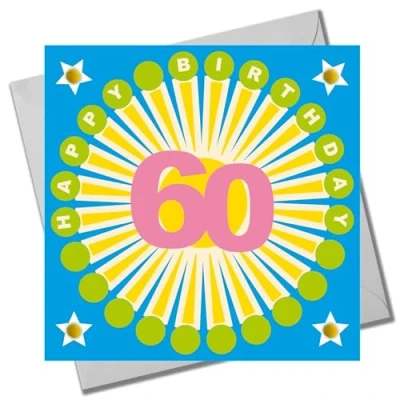 Claire Giles Greeting Cards, Age 60 Birthday Card, Happy 60th Birthday, Sunshine design and Embellished with pompoms