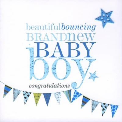 DIMENSIONS: 150x150mm CAPTION: Beautiful bouncing brand new Baby Boy BLANK INSIDE: Space inside for your own message MADE IN THE UK: Designed, printed and finished in the UK HIGH-QUALITY: Printed on top quality heavy 350gsm card stock, with envelope included SUSTAINABLE: Comes wrapped in Compostable bag or with a card catch label. Both the greetings card & envelope are sustainably sourced and recyclable STANDARD LETTER SIZE: Can be sent with Royal Mail standard letter stamps