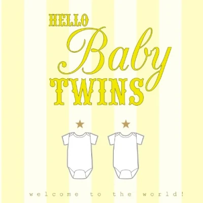 DIMENSIONS: 150x150mm CAPTION: Hello Baby Twins BLANK INSIDE: Space inside for your own message MADE IN THE UK: Designed, printed and finished in the UK HIGH-QUALITY: Printed on top quality heavy 350gsm card stock, with envelope included SUSTAINABLE: Comes wrapped in Compostable bag or with a card catch label. Both the greetings card & envelope are sustainably sourced and recyclable STANDARD LETTER SIZE: Can be sent with Royal Mail standard letter stamps
