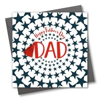 Claire Giles Greeting Cards, Father's Day Card, Star Burst Dad, Embellished with a colourful tassel