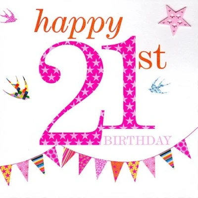 Claire Giles Greeting Cards, Happy 21st Birthday Card, Pink Age 21 Card