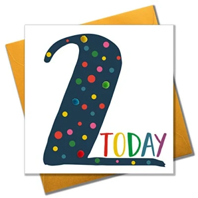 DIMENSIONS: 150x150mm CAPTION: 2 Today EMBELLISHMENT: Colourful Pompoms BLANK INSIDE: Space inside for your own message MADE IN THE UK: Designed, printed and finished in the UK HIGH-QUALITY: Printed on top quality heavy 350gsm card stock, with envelope included SUSTAINABLE: Comes wrapped in Compostable bag or with a card catch label. Both the greetings card & envelope are sustainably sourced and recyclable STANDARD LETTER SIZE: Can be sent with Royal Mail standard letter stamps