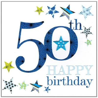 Claire Giles Greeting Cards, Happy 50th Birthday Card, Blue Age 50 Card