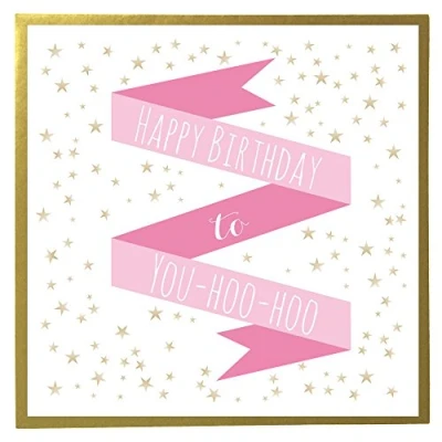 DIMENSIONS: 150x150mm CAPTION: Happy Birthday to You-Hoo BLANK INSIDE: Space inside for your own message MADE IN THE UK: Designed, printed and finished in the UK HIGH-QUALITY: Printed on top quality heavy 350gsm card stock, with envelope included SUSTAINABLE: Comes wrapped in Compostable bag or with a card catch label. Both the greetings card & envelope are sustainably sourced and recyclable STANDARD LETTER SIZE: Can be sent with Royal Mail standard letter stamps