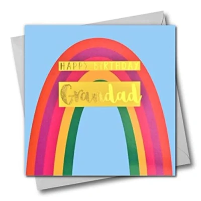 Claire Giles Greeting Cards, Happy Birthday Grandad Card, Rainbow Design Text Foiled in Shiny Gold