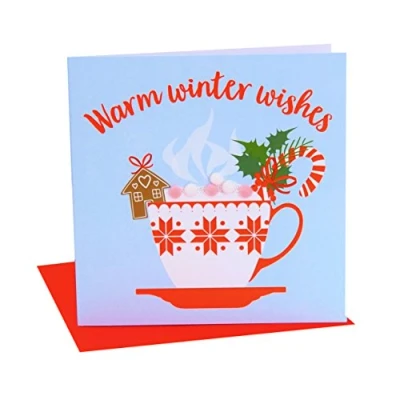 DIMENSIONS: 150x150mm CAPTION: Warm winter wishes EMBELLISHMENT: Colourful Pompoms BLANK INSIDE: Space inside for your own message MADE IN THE UK: Designed, printed and finished in the UK HIGH-QUALITY: Printed on top quality heavy 350gsm card stock, with envelope included SUSTAINABLE: Comes wrapped in Compostable bag or with a card catch label. Both the greetings card & envelope are sustainably sourced and recyclable STANDARD LETTER SIZE: Can be sent with Royal Mail standard letter stamps