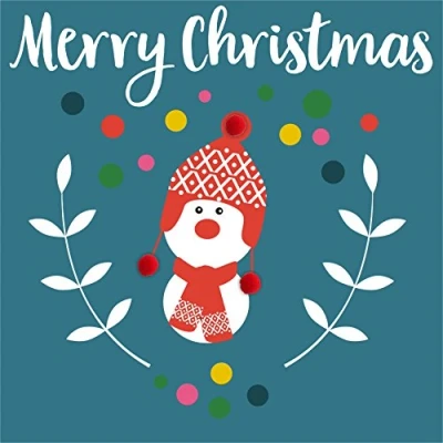 Claire Giles Greeting Cards, Happy Christmas Card, Snowman Design Xmas Embellished with Colourful Pompoms