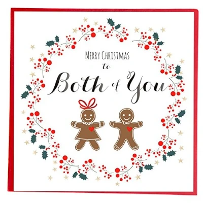 Claire Giles Greeting Cards, Happy Christmas Card, "to Both of You", Berries and Ginger Bread Couple Design, Merry Card