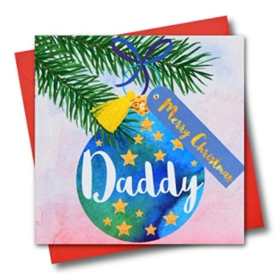 Claire Giles Greeting Cards, Happy Christmas Daddy Card, Bauble design xmas Dad Embellished with a Colourful Tassel
