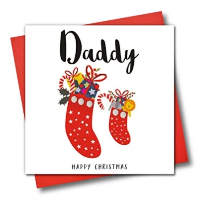 DIMENSIONS: 150x150mm CAPTION: Happy Christmas Daddy EMBELLISHMENT: Colourful Pompoms BLANK INSIDE: Space inside for your own message MADE IN THE UK: Designed, printed and finished in the UK HIGH-QUALITY: Printed on top quality heavy 350gsm card stock, with envelope included SUSTAINABLE: Comes wrapped in Compostable bag or with a card catch label. Both the greetings card & envelope are sustainably sourced and recyclable STANDARD LETTER SIZE: Can be sent with Royal Mail standard letter stamps