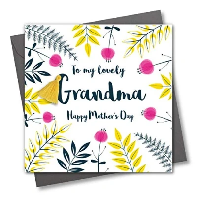 Claire Giles Greeting Cards, Happy Mother's Day Grandma Card, Floral Design for a Lovely Grandmother on Mothering Sunday, Embellished with Colourful Tassel