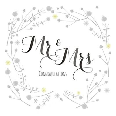 DIMENSIONS: 150x150mm CAPTION: Mr & Mrs, Congratulations BLANK INSIDE: Space inside for your own message MADE IN THE UK: Designed, printed and finished in the UK HIGH-QUALITY: Printed on top quality heavy 350gsm card stock, with envelope included SUSTAINABLE: Comes wrapped in Compostable bag or with a card catch label. Both the greetings card & envelope are sustainably sourced and recyclable STANDARD LETTER SIZE: Can be sent with Royal Mail standard letter stamps