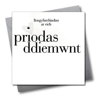 DIMENSIONS: 150x150mm CAPTION: Llongyfarchiadau ar eich priodas ddiemwnt ENGLISH TRANSLATION: Congraulations on your Diamond Anniversary EMBELLISHMENT: Gem BLANK INSIDE: Space inside for your own message MADE IN THE UK: Designed, printed and finished in the UK HIGH-QUALITY: Printed on top quality heavy 350gsm card stock, with envelope included SUSTAINABLE: Comes wrapped in Compostable bag or with a card catch label. Both the greetings card & envelope are sustainably sourced and recyclable STANDARD LETTER SIZE: Can be sent with Royal Mail standard letter stamps