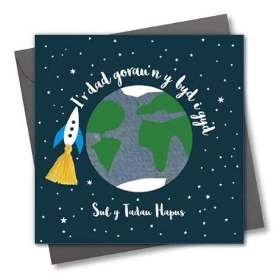 Claire Giles Greeting Cards, Welsh Father's Day Card, Sul y Tadau Hapus, Best Daddy Rocket Tassel Embellished
