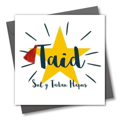 Claire Giles Greeting Cards, Welsh Father's Day Card, Sul y Tadau Hapus Taid, Grandad, Tassel Embellished